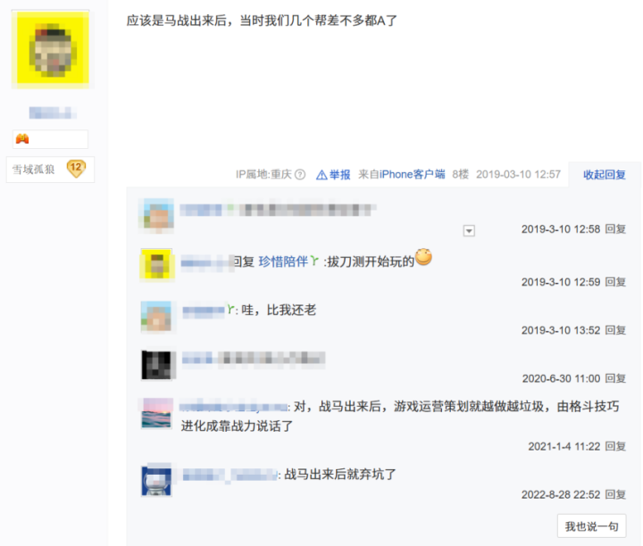 其实,从贴吧玩家回顾当年的经历,可以看出来,马战之后,对玩家群体的伤害之大了。
