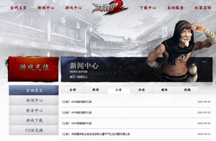 回望《刀剑2》的起落沉浮,实在令人唏嘘不已,虽然如今仍在腾讯手中运营,但也就是开个服务器,让一些死忠粉有个归处而已,游戏里的公告与活动等内容,也已经5年没更新。