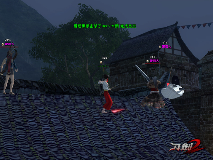 比如,在《刀剑2》中,有一个玩法叫“夜战瓦当”,这是一个多人自由群战活动,以夜色中的新手村瓦当镇为战场,融合了游戏硬核格斗系统与多人混战的大逃杀玩法,其实也是武侠吃鸡模式。