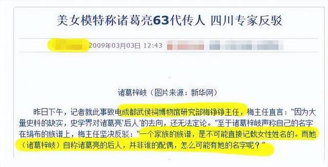 随着诸葛紫岐热度的不断攀升,她造假的相关新闻也逐渐浮出水面,首先成都武侯祠博物馆研究部的梅主任在接受访问时称,史学界对诸葛亮后人的去向还无法定论。