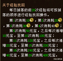 掉的经验也可以找回,每天最多20次,找回的花费依次提升!