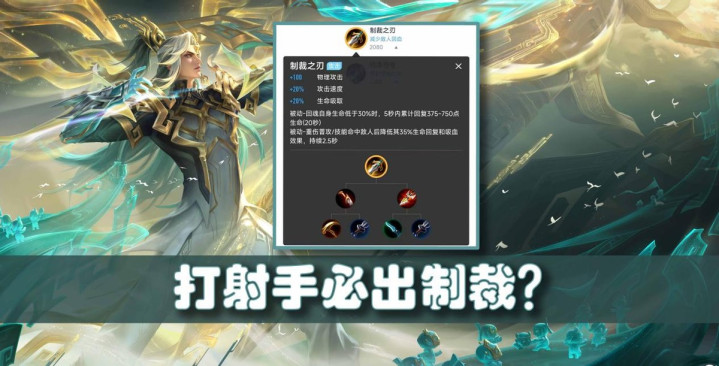 很多小伙伴在日常游戏中,看到敌方选出蔡文姬、程咬金、桑启这类回血英雄的时候,就着急让射手出制裁之刃。但是很多时候射手的出装要满足英雄机制,而不是盲目的针对回血阵容。