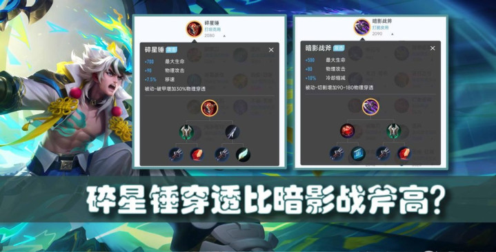 碎星锤和暗影战斧都是具备物理穿透的两件装备,你是不是也会纠结这两件装备该怎么选择?