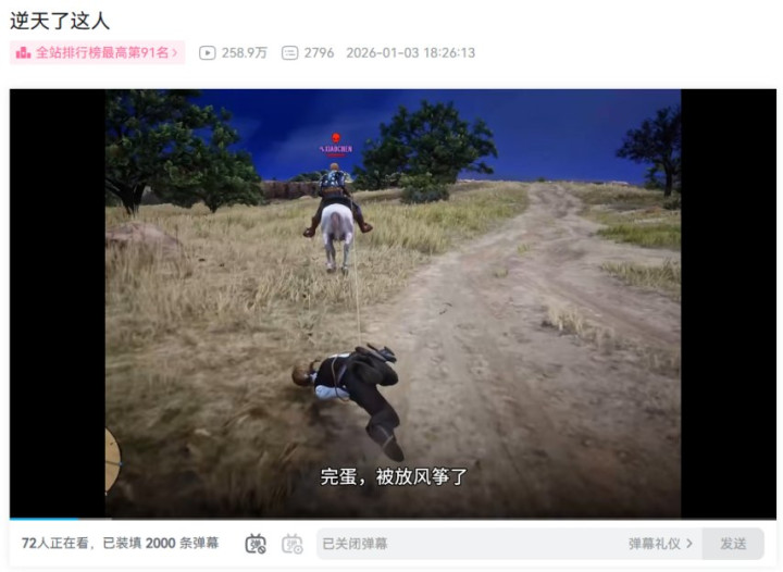 B站有一位叫“荒野大天官”的up主,他的视频多是展示外挂为主,再搭配上唐唐的国产剧情,起初播放量都比较一般。