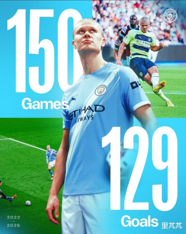 加盟曼城以来,哈兰德展示出了恐怖的进球效率,他在150场比赛里打进129球并送出21次助攻,场均直接参与1球的。