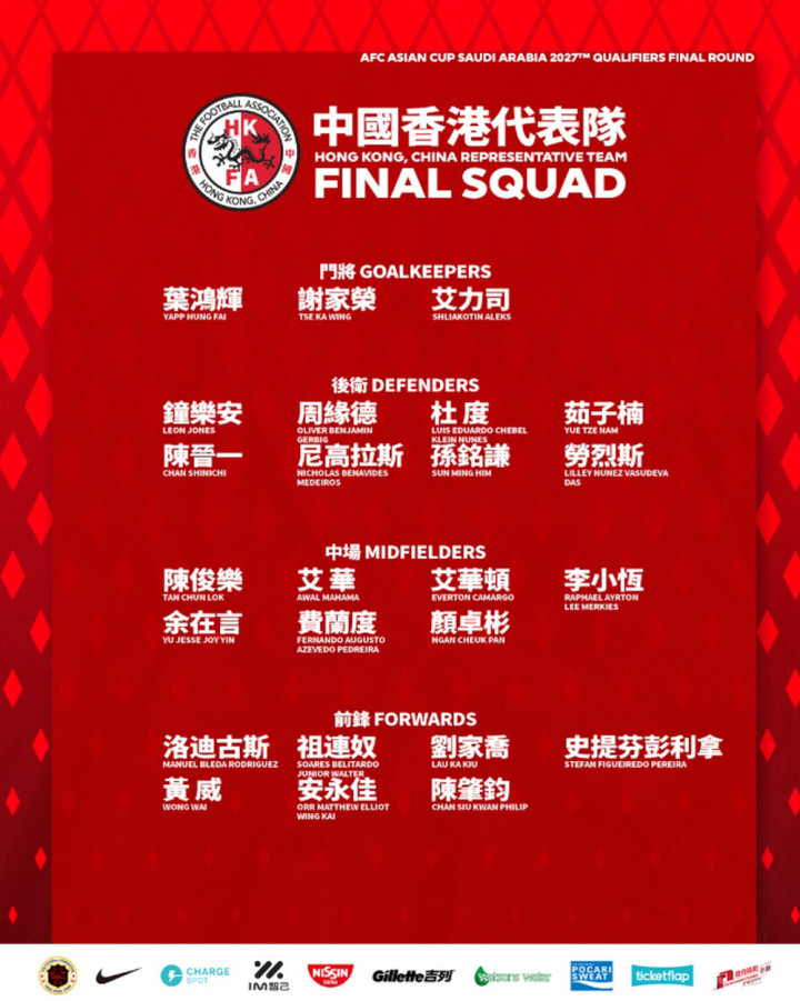 中国香港队大名单