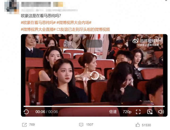 但当镜头扫过欧豪和马思纯时,有眼尖的网友发现,欧豪向马思纯的方向看了好几眼,造成了欧豪偷瞄马思纯的错觉。